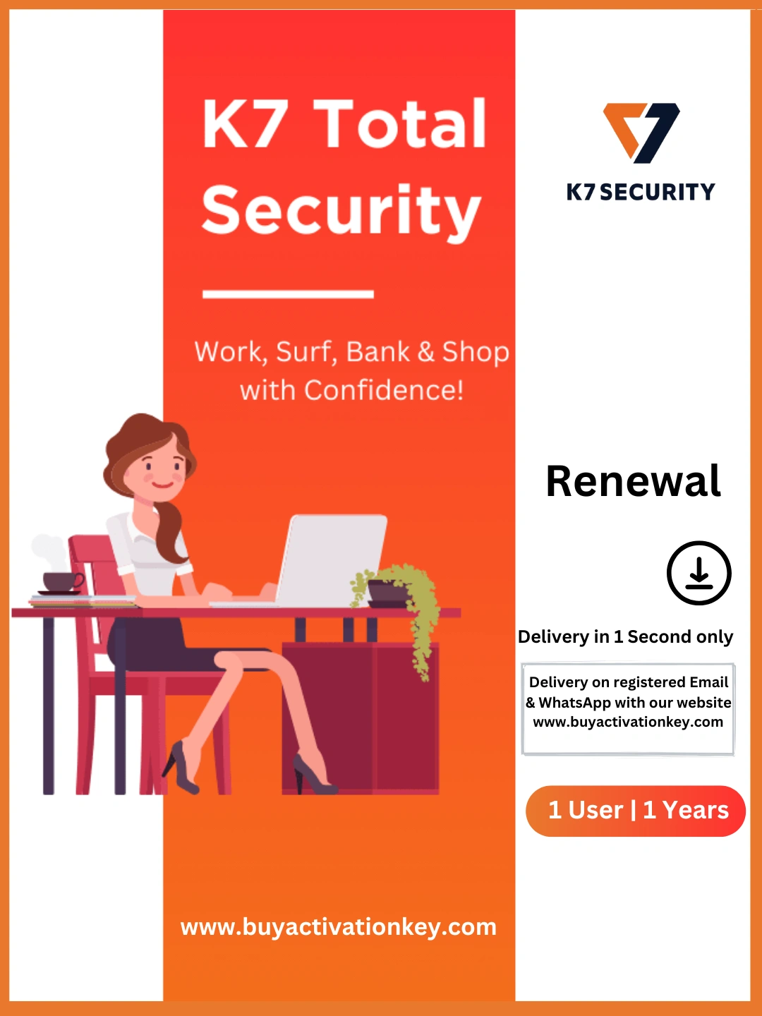 Renew K7 Total Security 1 User 1 Year offers comprehensive protection against malware, viruses, spyware, and ransomware. With real-time scanning, web protection, privacy features, and parental controls, this product ensures the safety of your device and safeguards your personal information. By renewing, you can continue to enjoy a secure digital experience for one year, knowing that K7 Total Security has your back.