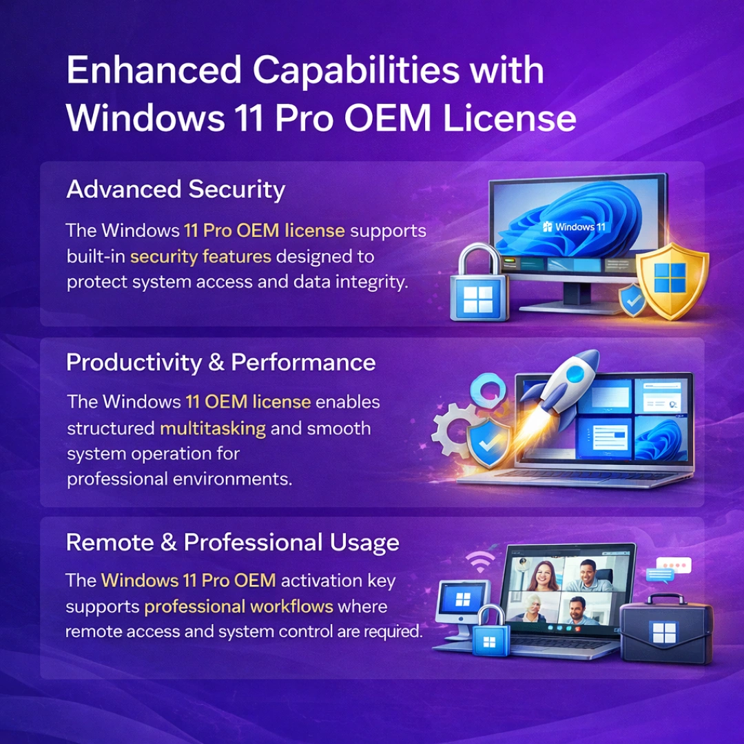 The windows 11 oem license enables structured multitasking and smooth system operation for professional environments.